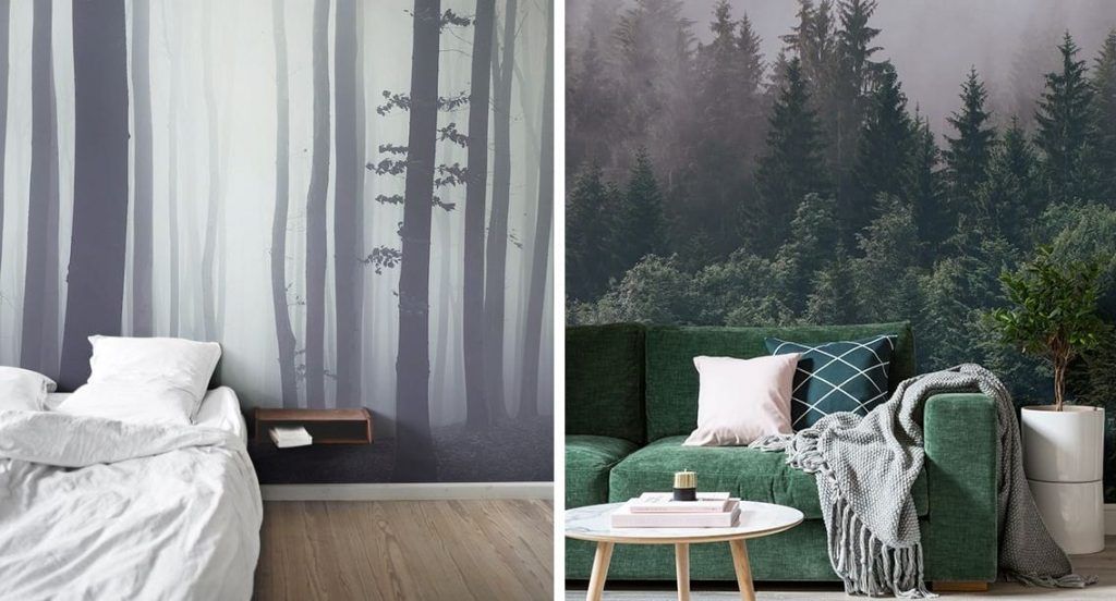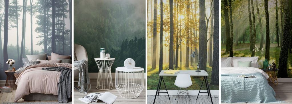 Fototapety, obrazy, dekoracje związane z lasem to dodatki, które muszą znaleźć się w każdym modnym mieszkaniu. Oprócz samego motywu drzew i liści na topie będzie również surowe, naturalne drewno.
