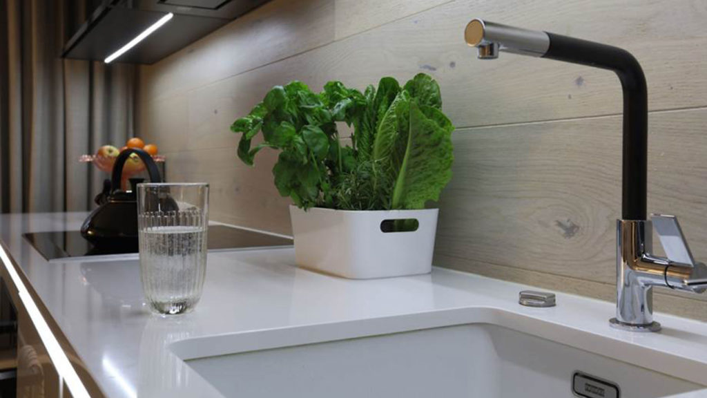 Drewniane panele w kuchni to dobry sposób na urządzenie wnętrza w stylu klasycznym lub nowoczesnym. Drewno będzie pięknie współgrało z blatem i wprowadzi do wnętrza więcej natury. Kolor ściany może zlewać się z blatem, tworząc dużą, efektownie załamaną płaszczyznę. Dobrym pomysłem będzie też wybranie takich samych desek jak te, które pokrywają podłogę.