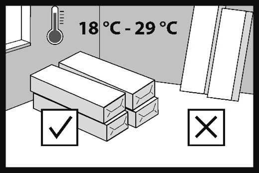 Podłoga powinna być przechowywana w oryginalnym opakowaniu w pomieszczeniu, w którym ma być położona, przez co najmniej 24 godzin, aby zapewnić jej aklimatyzację. Temperatura powietrza powinna wynosić od +18°C do +29°C.