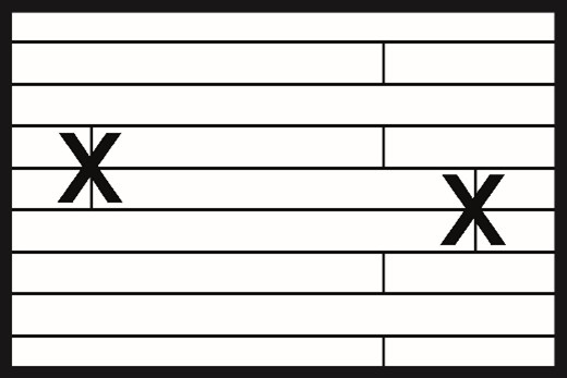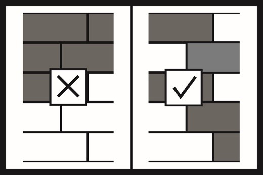 Naturalny układ podłogi uzyskamy mieszając deski o różnych długościach w jednym pasie podłogi. Minimalne zalecane przesunięcie połączeń na krótkich krawędziach paneli SPC w sąsiadujących pasach podłogi musi być większe niż 200 mm.