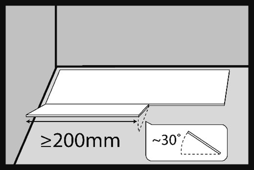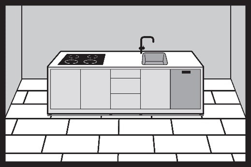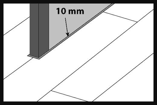 Wokół przedmiotów takich jak wyspa kuchenna, ciężkie meble należy koniecznie wykonać dylatację wokół zabudowy lub nóżek meblowych. Minimalna szerokość szczeliny dylatacyjnej wynosi 10mm. Ciężkie meble nie mogą być ustawiane bezpośrednio na powierzchni podłogi.