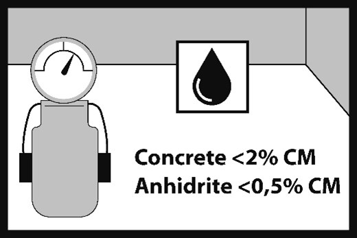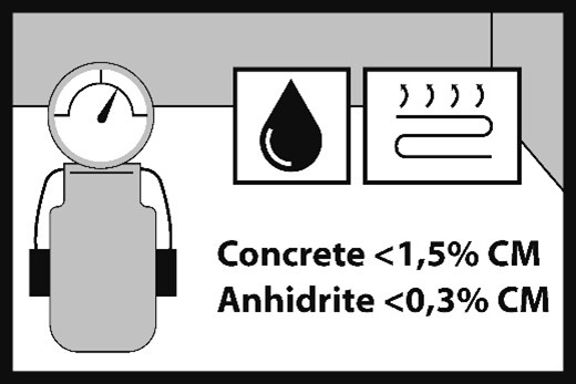Wilgotność podłoża drewnianego (lub płyt drewnopochodnych) nie powinna przekraczać 12%. Wilgotność podłoża betonowego nie powinna przekraczać 2%, a podłoża anhydrytowego – 0,5%. Wyniki pomiarów powinny zostać udokumentowane.