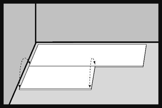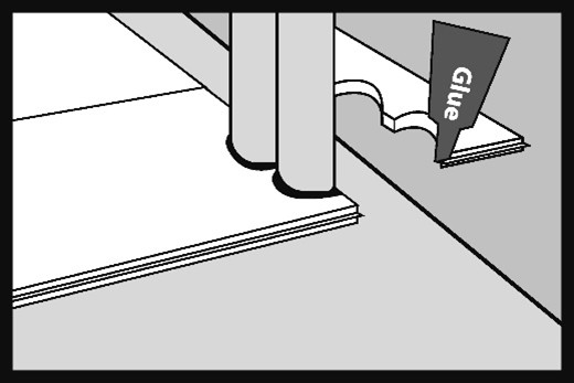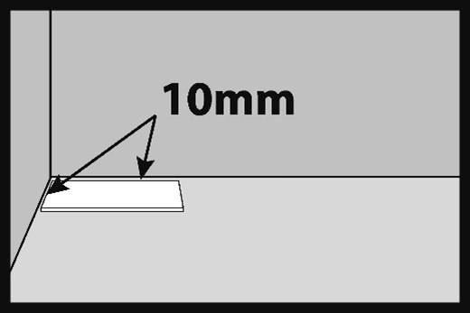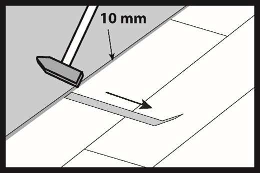 Montaż rozpoczynamy z lewej strony ściany i kontynuujemy w prawą stronę. Wielkość szczeliny dylatacyjnej powinna wynosić minimum 10 mm. Przy zachowaniu takiego samego wymiaru szczeliny pomocne będą kliny dylatacyjne. Szczelina dylatacyjna powinna być wykonana wzdłuż obwodu pomieszczenia oraz wokół wszelkich innych przeszkód jak, słupy, schody, płytki ceramiczne, itp.