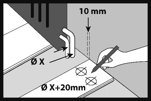 Przy rurkach od kaloryferów w panelu SPC musimy narysować otwory o średnicy większej o 20 mm.
