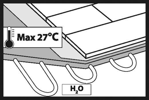 System chłodzenia podłogowego powinien być zabezpieczony przed spadkiem temperatury wody w instalacji poniżej +18°C.