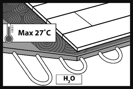 Maksymalny opór cieplny zainstalowanej podłogi nie może być większy niż R≤0,15m2K/W. W celu uzyskania wartości minimalnego oporu cieplnego, Barlinek zaleca klejowy system montażu podłogi lub zastosowanie podkładu podpodłogowego o bardzo niskim współczynniku strat ciepła: w ofercie firmy Barlinek jest to podkład EXTREME 1.5