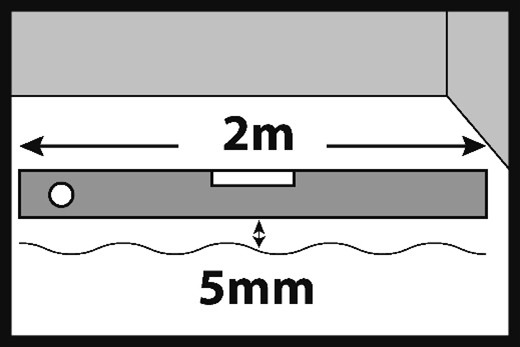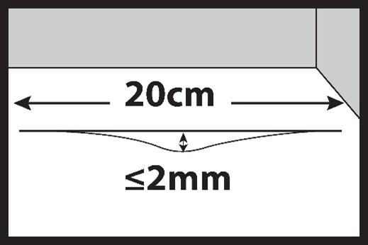 Maksymalne dopuszczalne nierówności mogą wynosić do 5 mm, mierzone na długości 2 m. Nierówności lokalne/miejscowe nie większe niż 2 mm na długości 20 cm.