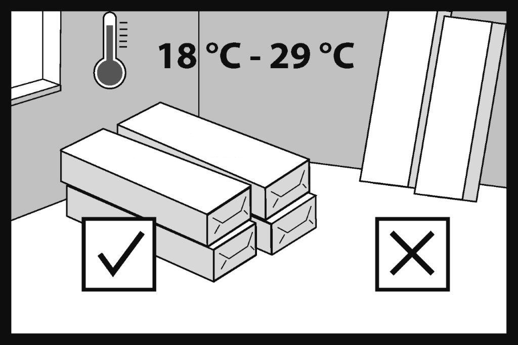 Podłoga powinna być przechowywana w oryginalnym opakowaniu w pomieszczeniu, w którym ma być położona, przez co najmniej 24 godzin, aby zapewnić jej aklimatyzację. Temperatura powietrza powinna wynosić od +18°C do +29°C.