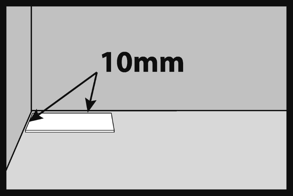 Montaż rozpoczynamy z lewej strony ściany i kontynuujemy w prawą stronę. Wielkość szczeliny dylatacyjnej powinna wynosić minimum 10 mm. Przy zachowaniu takiego samego wymiaru szczeliny pomocne będą kliny dylatacyjne. Szczelina dylatacyjna powinna być wykonana wzdłuż obwodu pomieszczenia oraz wokół wszelkich innych przeszkód jak, słupy, schody, płytki ceramiczne, itp.