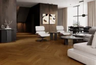 Podłoga dębowa o przyjemnie ciepłej barwie antycznego brązu. Struktura desek została podkreślona procesem szczotkowania, a ścięte krawędzie dodają deskom lekkości. Podłoga wykończona lakierem matowym.