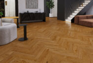 Podłoga dębowa w ciepłym kolorze antycznego brązu. Pokryta matowym lakierem. Strukturę drewna podkreślono poprzez szczotkowanie, zaś krawędzie desek poprzez mikrofazę. Podłoga w wersji 1-lamelowej.