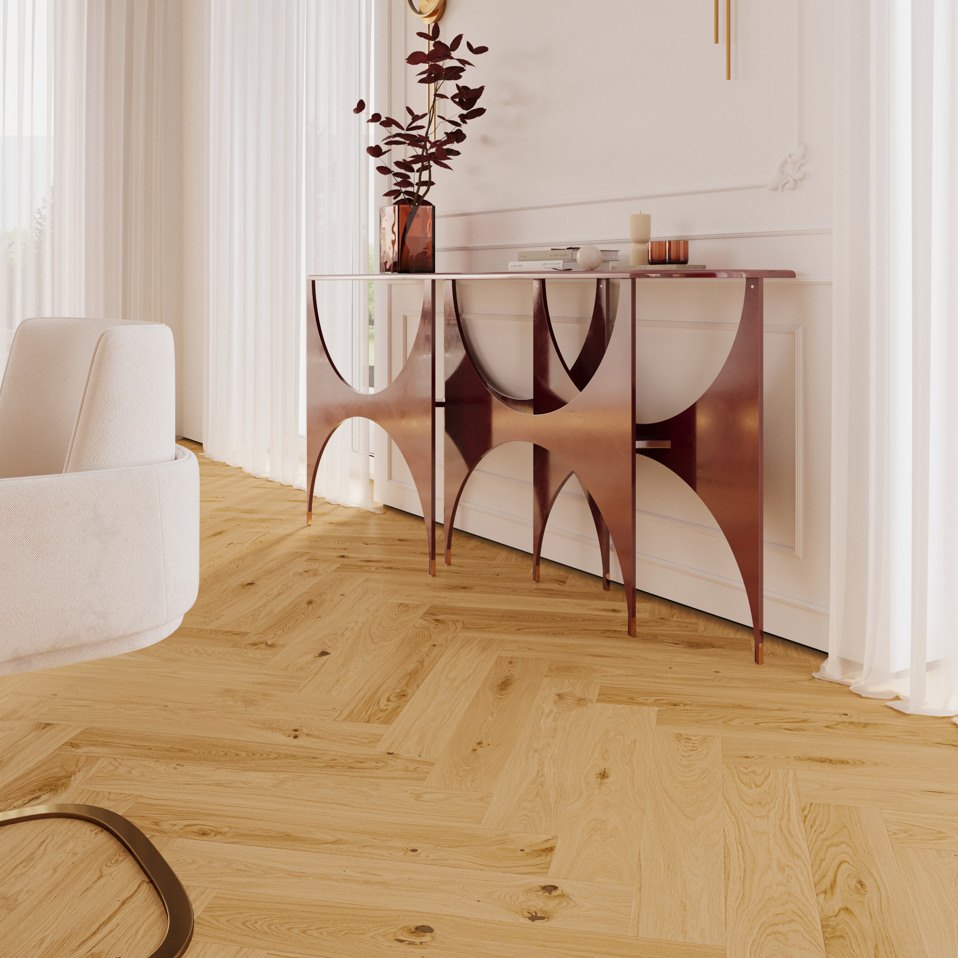 Grand Canyon Jodła Klasyczna ma rustykalny charakter, który podkreślony został poprzez zabieg szczotkowania oraz ścięcia krawędzi deski. Podłoga wykończona olejem naturalnym.