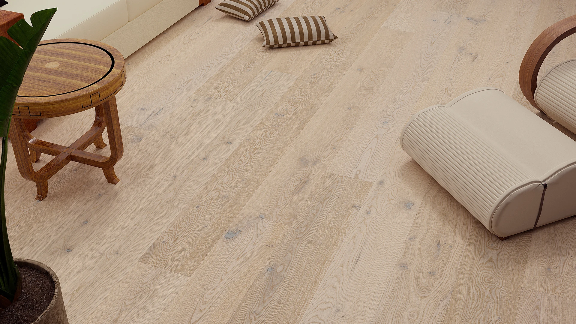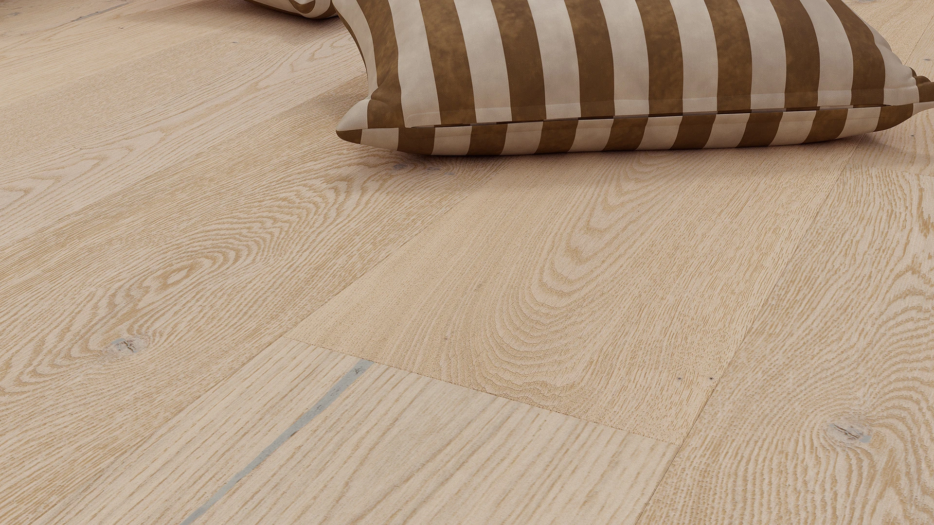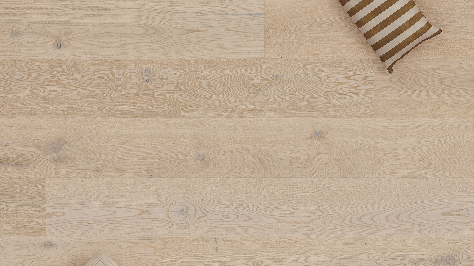 Dębowa podłoga 1-lamelowa o szerokości 207 mm i długości 2200 mm o jasnym zabarwieniu, nacechowana dużą ilością cech drewna, dzięki czemu zachowuje też rustykalne cechy. Wykończona olejem naturalnym, który uwypukla zabieg szczotkowania. Fazowana na długiej krawędzi.