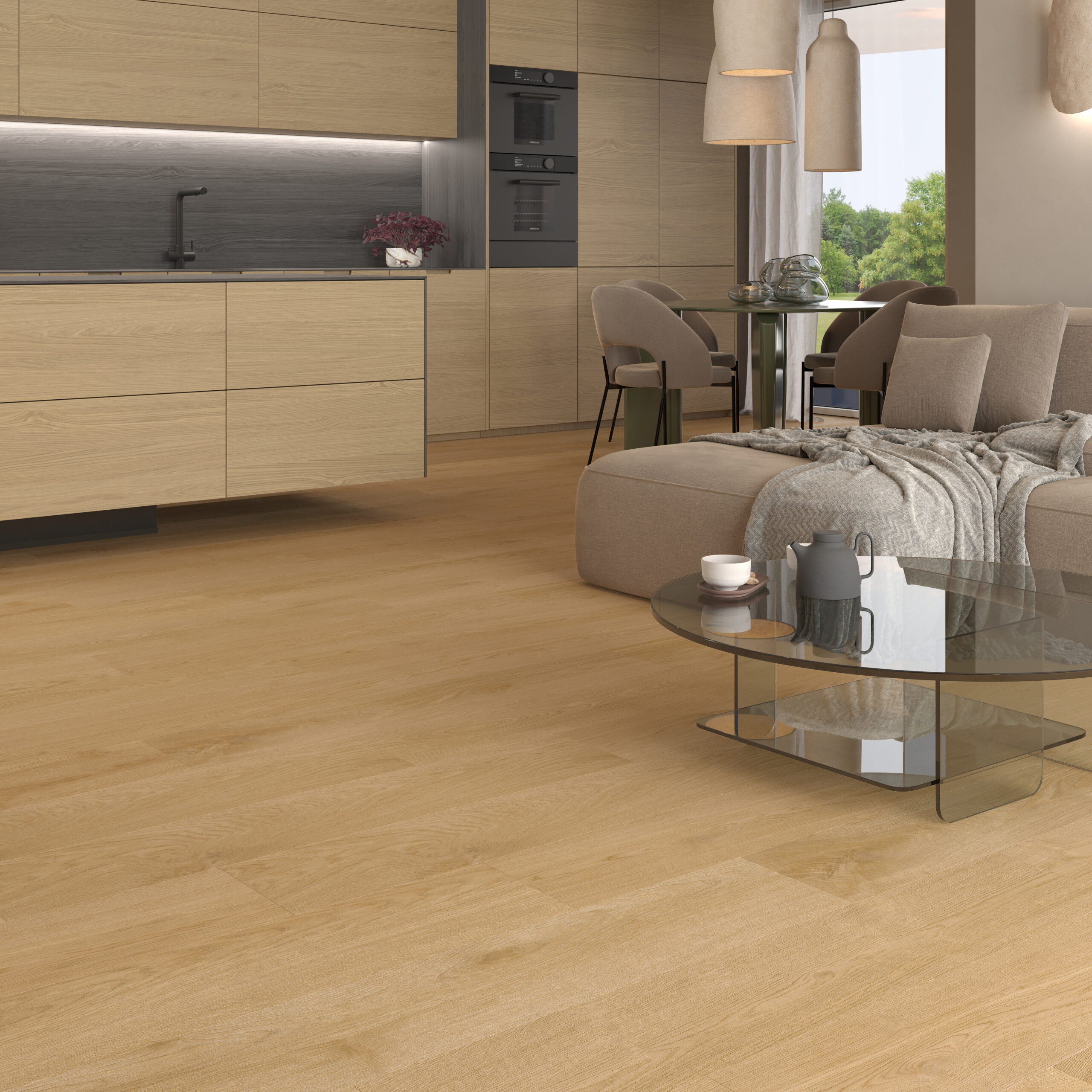 Naturalny, jasny ton wypełnia wnętrze światłem, nadając mu przyjazny charakter.