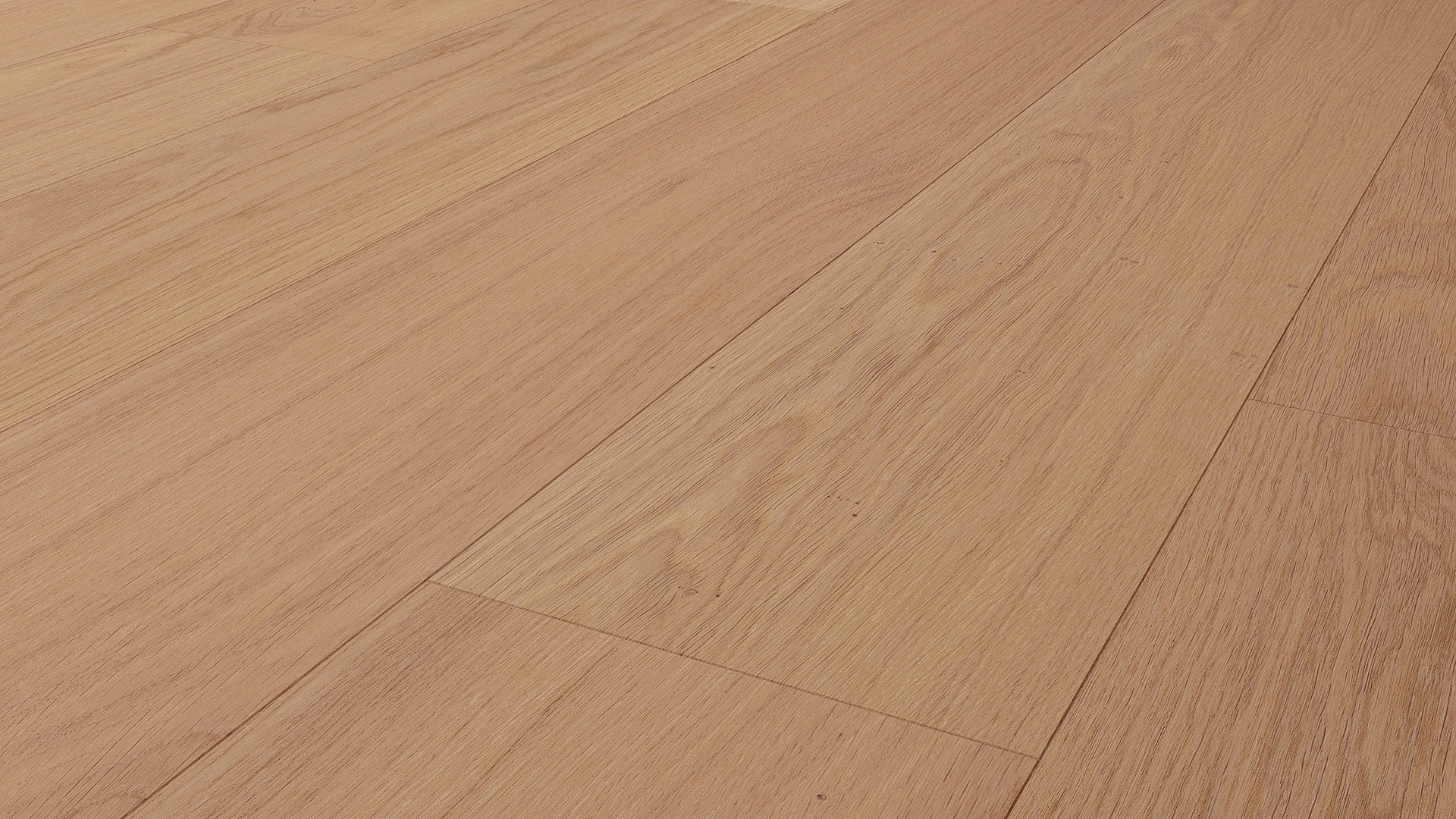 Lekko zabielona, 1-lamelowa podłoga dębowa to połączenie subtelnej elegancji, naturalnego charakteru i ponadczasowego stylu. Delikatne bielenie podkreśla rysunek słojów, rozjaśniając drewno i nadając mu świeży, harmonijny wygląd. Deski zostały poddane procesowi szczotkowania, który wydobywa autentyczną strukturę drewna i nadaje powierzchni głębię oraz wyrazistość dodatkowo zaakcentowaną poprzez 4-stronną mikrofazę. Wykończenie wysoce odpornym supermatowym lakierem chroni powierzchnię i zachowuje jej naturalne, delikatnie bielone wykończenie. Dzięki temu podłoga nie tylko pięknie wygląda, ale również świetnie sprawdza się w codziennym użytkowaniu.