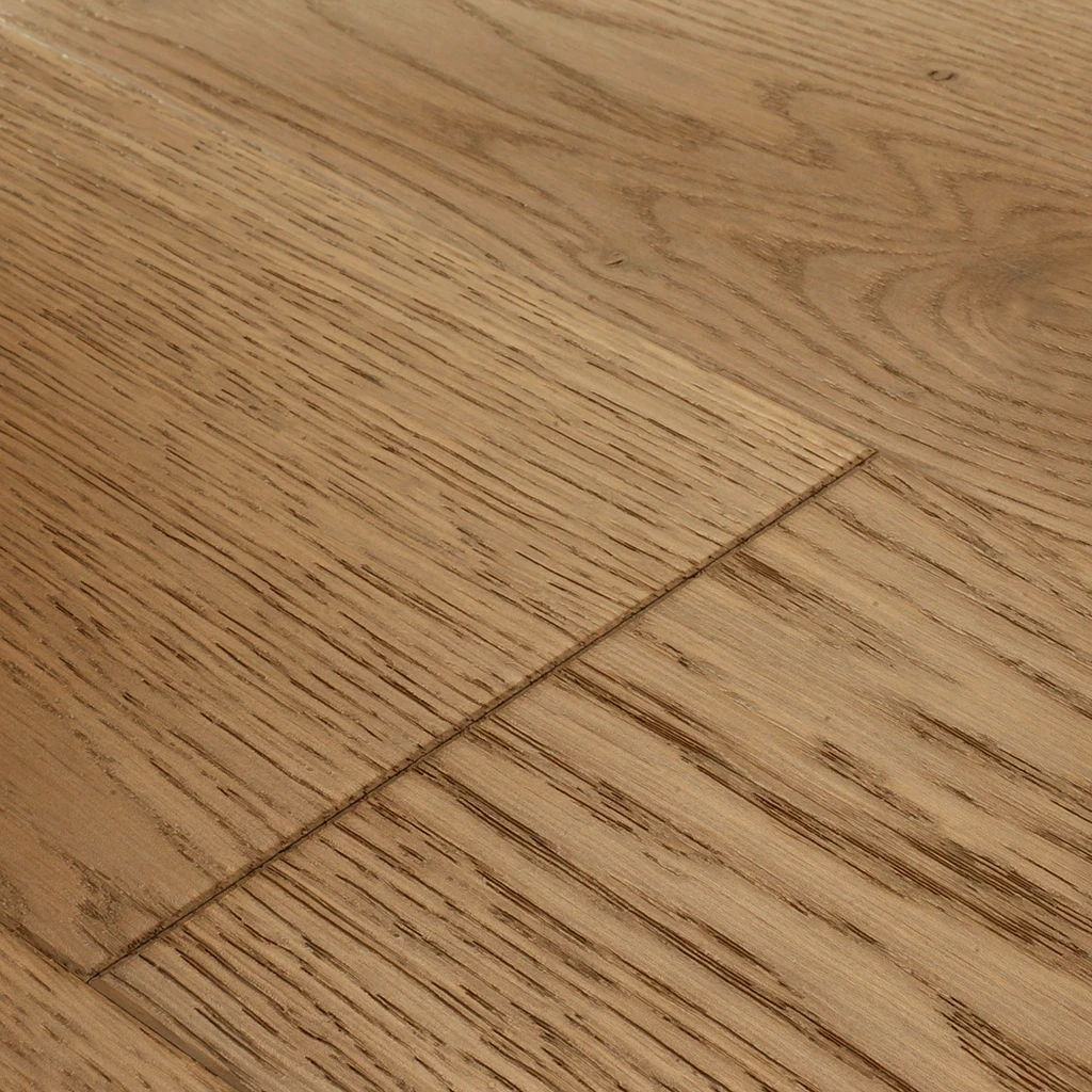 podłoga wykonana ze starannie wyselekcjonowanego drewna, którego charakter został subtelnie podkreślony procesem szczotkowania