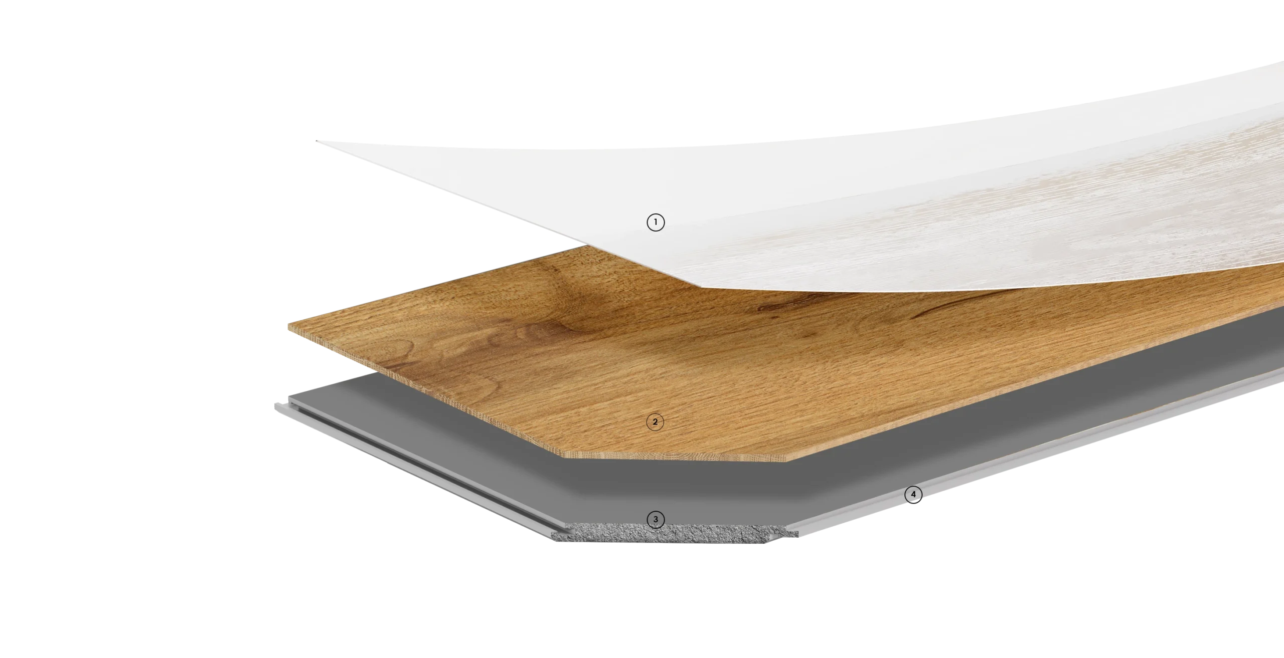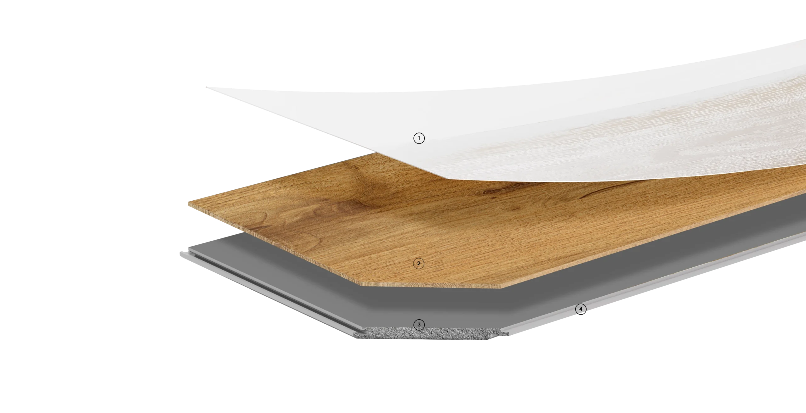 podłoga skutecznie zabezpieczone przed wodą dzięki wodoodpornemu rdzeniowi mineralnemu, wodoszczelnemu zamkowi oraz systemowi lakierniczemu z idealnie chronionymi fazami*